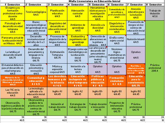 4 años divididos en 8 semestres.